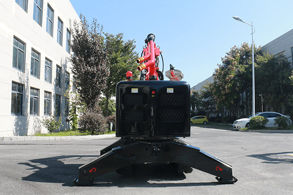 采用柴油動力驅(qū)動液壓系統(tǒng)實現(xiàn)行走和消防作業(yè),動力強勁,續(xù)航能力強。通過遙控電液伺服系統(tǒng)可實現(xiàn)遠距離操控,適用于有毒、?;?、爆炸、核污染等危險場所。機器人擁有可回轉(zhuǎn)平臺和仿人三節(jié)臂工作機構(gòu),配套機械快換快速換裝液壓錘、液壓剪液壓劇,抓斗等,可完成較大作業(yè)半徑的破拆、剪切,抓取搬運等工作,同時具備功率大,體積小,便于狹小空間大功率開展消防救援工作,同時機器人搭載80L/s大流量消防炮,水帶拖行能力強,對大型火災(zāi)的迅速撲救工作尤為擅長。